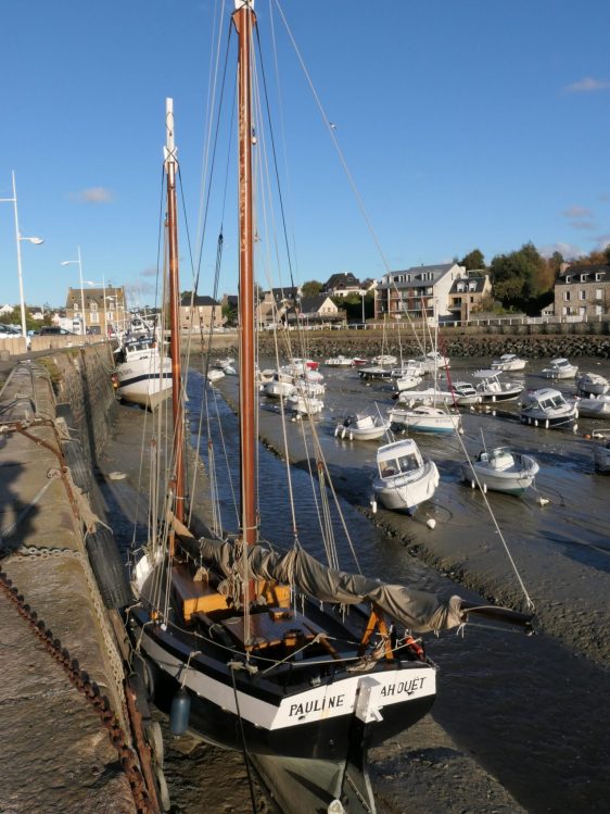 En suivant le sentier des douaniers, on arrive au port de Dahouët, après être passés devant l’oratoire de Notre-Dame de la Garde. Le port de Dahouët date du XIIe siècle . On découvre encore de belles maisons d’armateurs sur les quais. Le port était spécialisé dans la pèche à la morue autour de Terre Neuve et de l’Islande. Désormais, si l’on y trouve des bateaux de plaisance, des passionnés font revivre les vieux gréements et le passé du patrimoine maritime. On peut ainsi embarquer sur La Pauline, pour une balade dans la baie de Saint-Brieuc.
